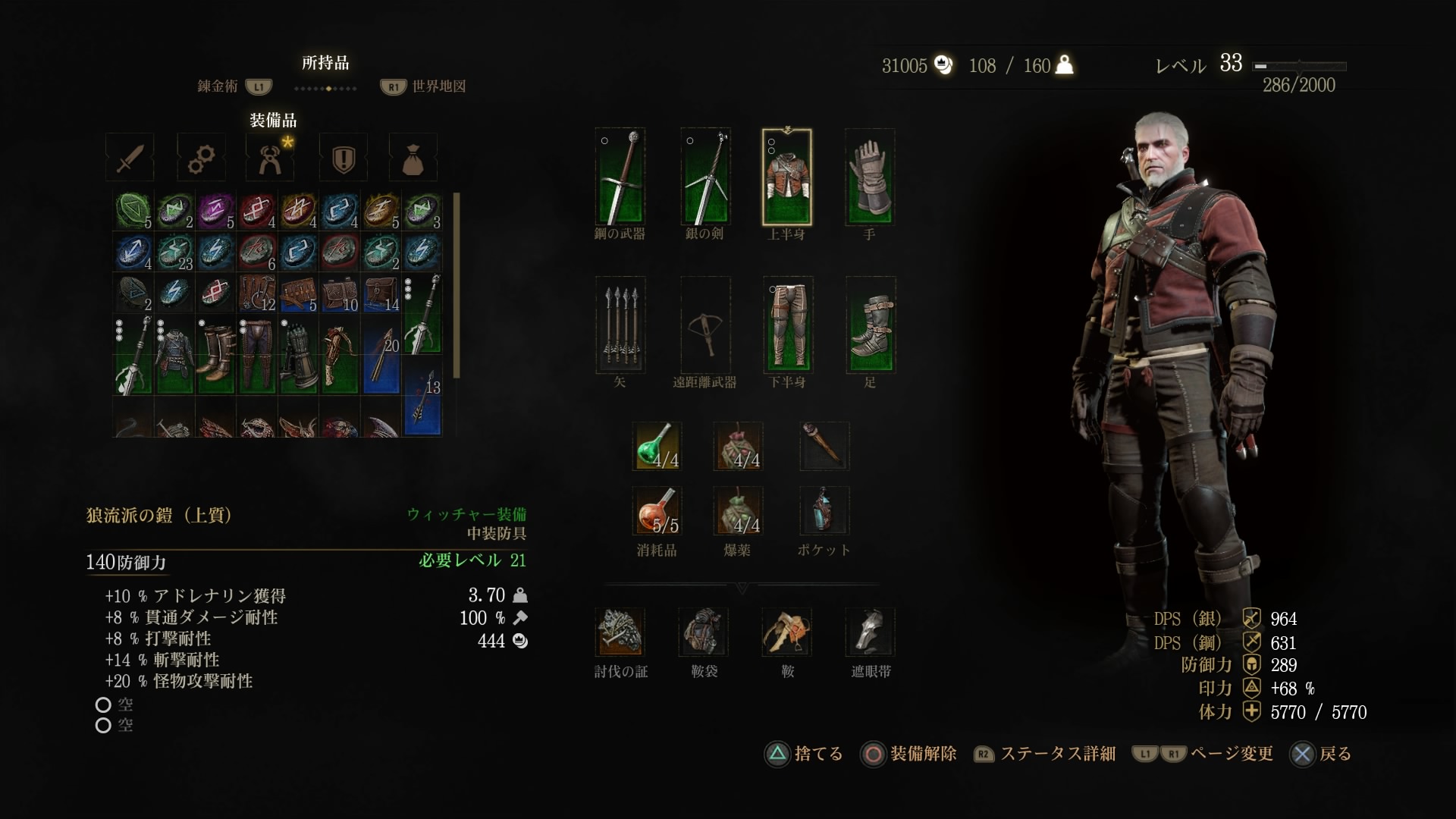 地図探しに時間を取られて、肝心の装備は上質までしか集められませんでした。