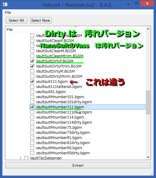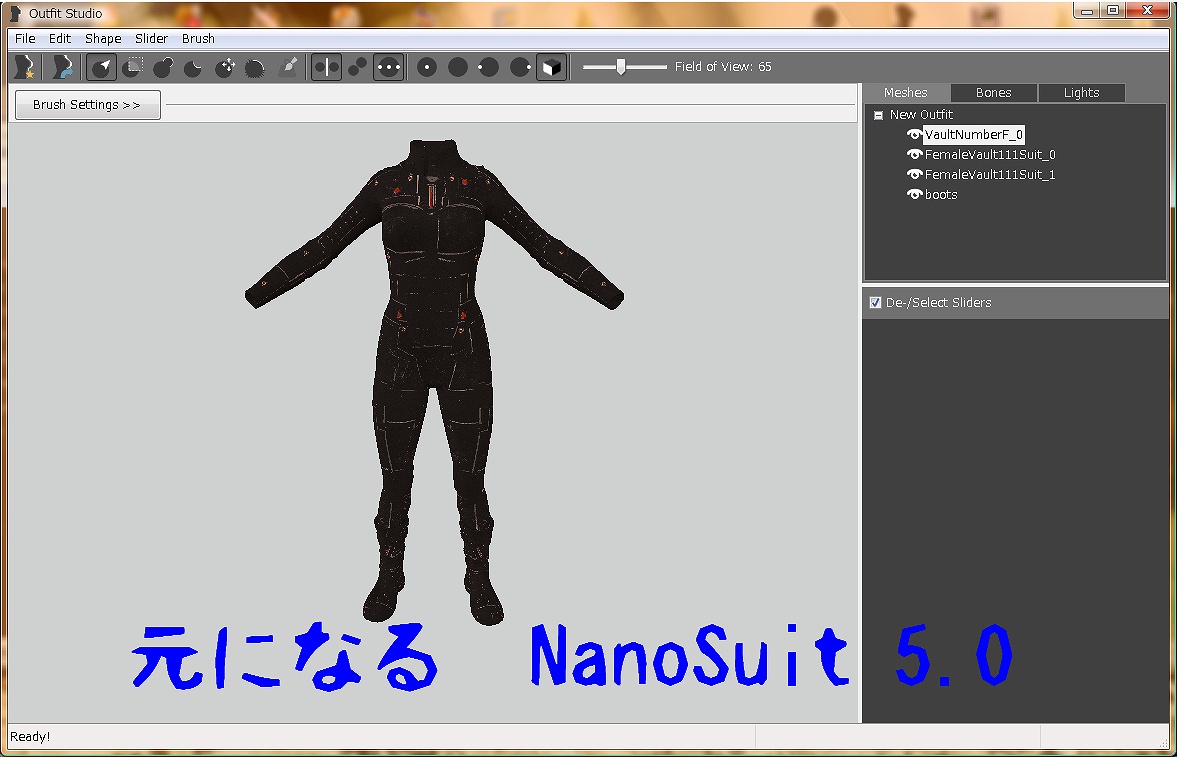 今回は 「新品のVault111Suit」のみに新規メッシュを適用したので