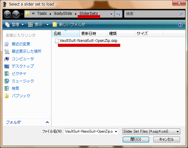 それを 新規作成しておいたclothes<VaultSuit<Vault111SuitOzip<メッシュ名