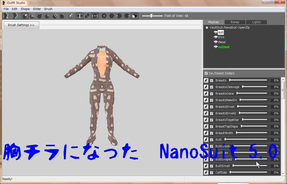 OpenZipperで 胸はだけ状態になるのは 「新品のVault111Suit」だけになります。