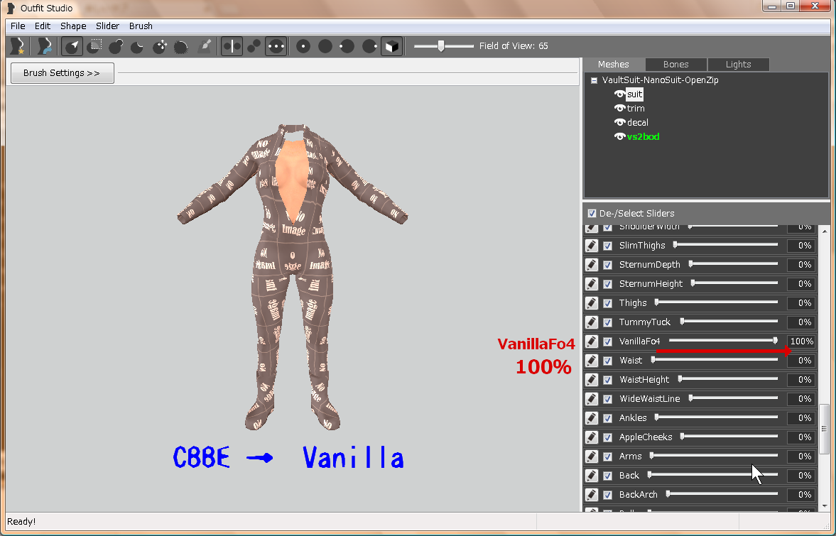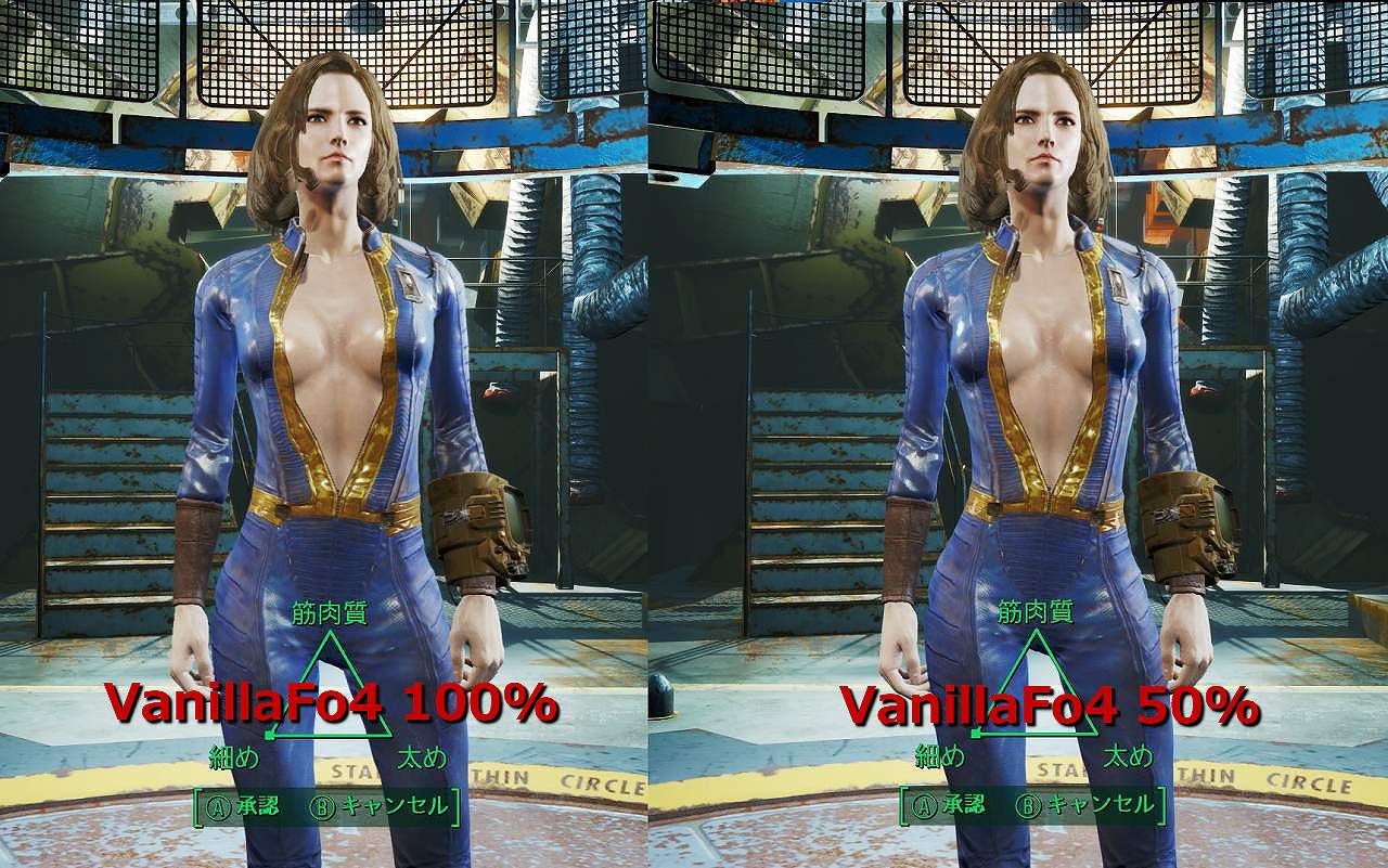 VanillaFo4のスライダーを50%に調整して BaseBodyのはみ出し量を増やしました。