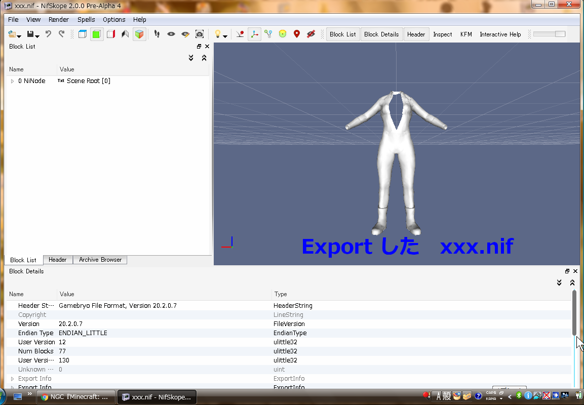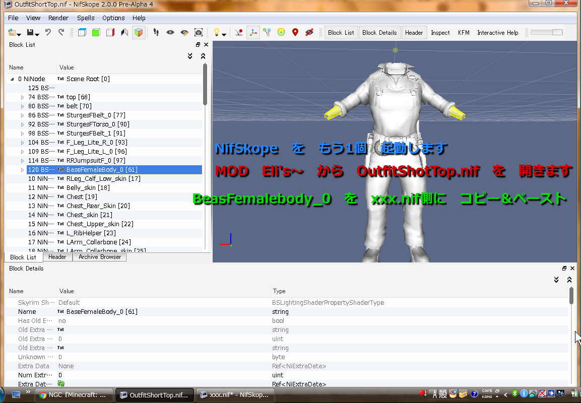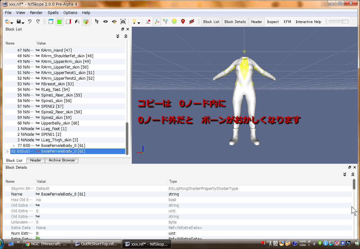 横列のFemale Model 指定箇所 nifデータのパスがありますので