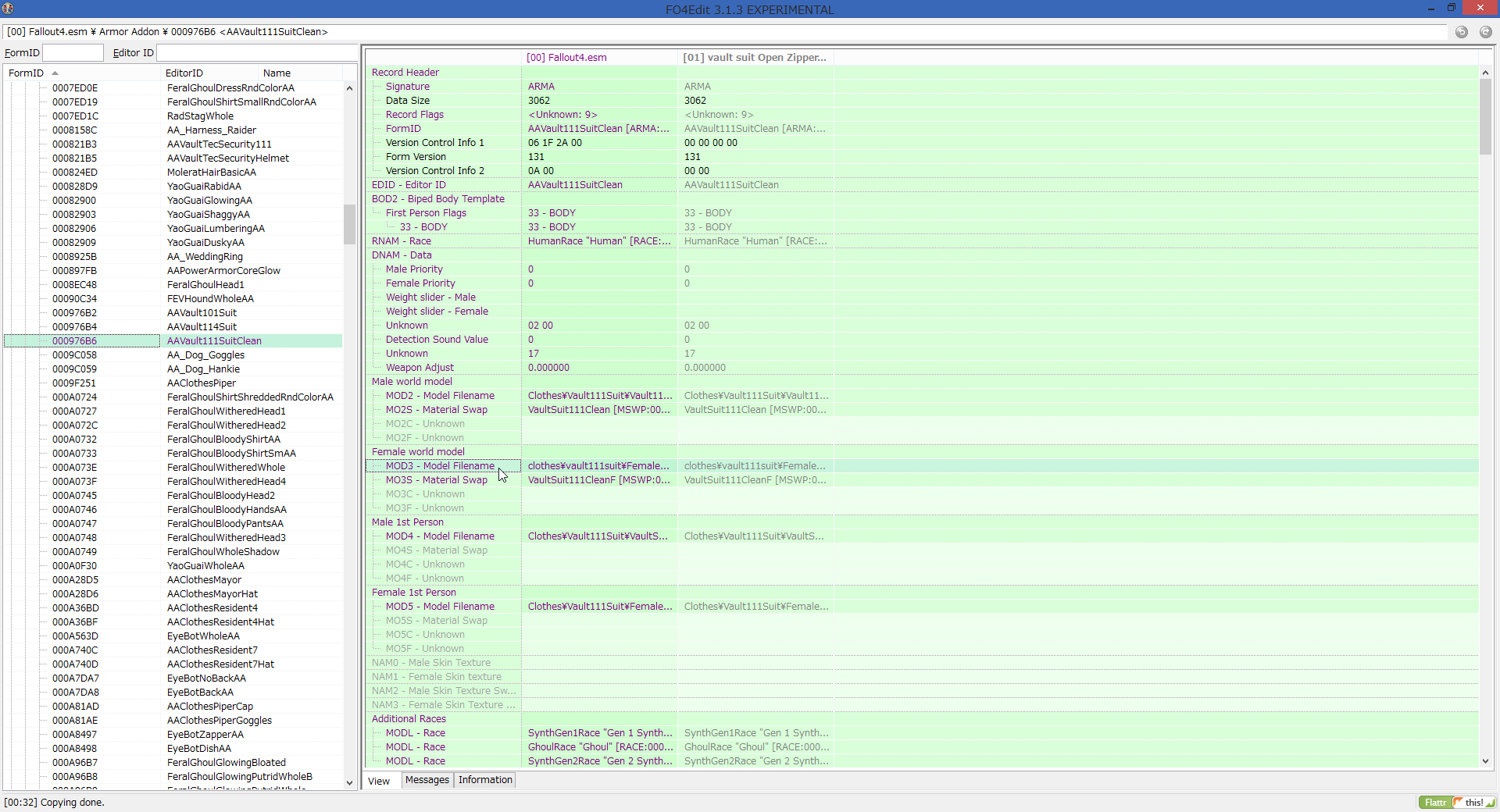 Vault Suit OpenZipper.esp直下のFemale Modelの部分で右クリックすると